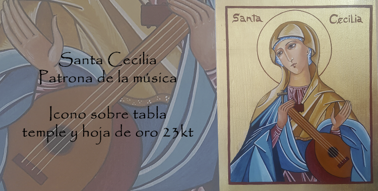 Santa Cecilia es la patrona de la música y los músicos, aunque no esté claro su origen siempre se la ha representado con instrumentos, en especial el órgano, el violín y el laúd.