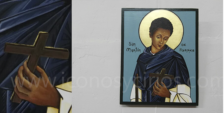Icono de San Martín de Porres, pintado sobre tabla de abedul.